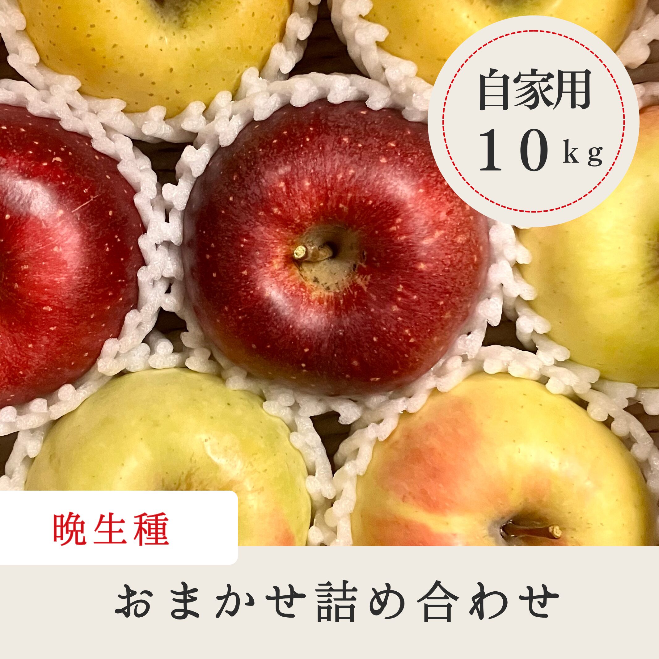 その時期に採れた晩生種(王林・シナノゴールド・あいかの香り・サンふじ他)のりんごを2・3種類詰め込んだセットです。